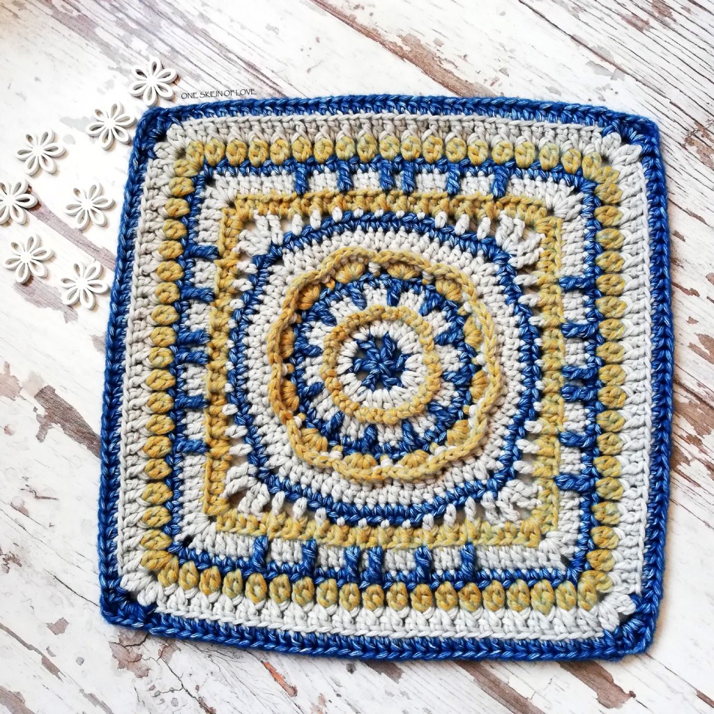 “Desert Flower” afghan square is a free pattern, designed for Friends Around The World Crochet A Long 2020 (FATW5), available in Ravelry.