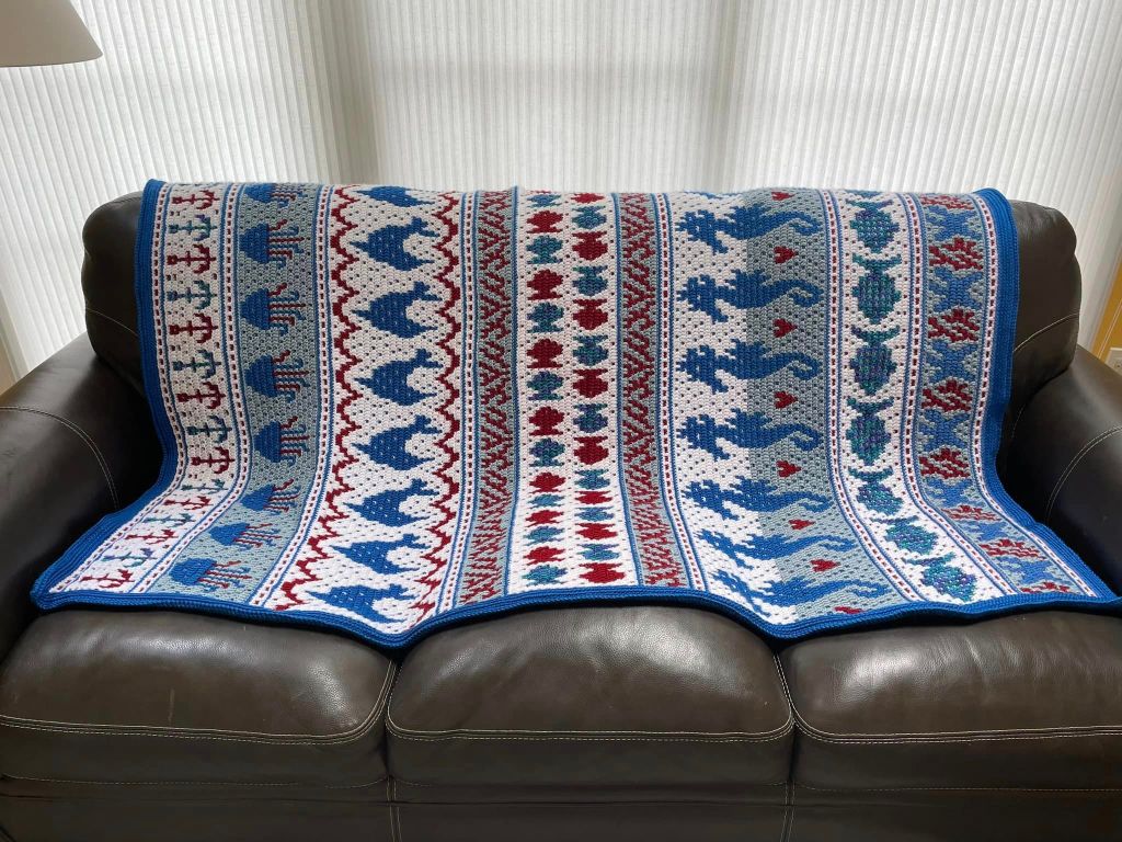 The blanket is divided into 6 parts. The first 5 parts will create the blanket body. The last part will be dedicated to the border. There are 9 different patterns distributed by the first 5 parts of the CAL. You can play with the patterns or repeats to create other house decor itens, besides blankets.
