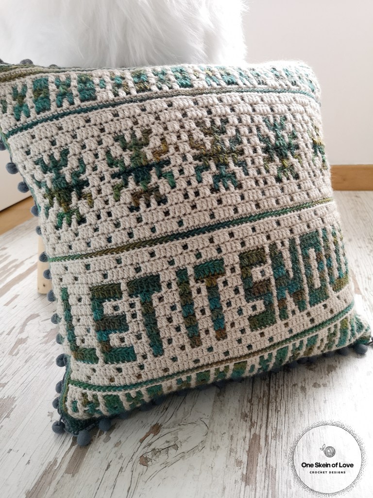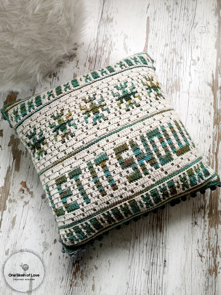To pair with Magic Winter pattern I came up with «Let it Snow». This is a crochet cushion panel pattern, that matches «Magic Winter» blanket perfectly.